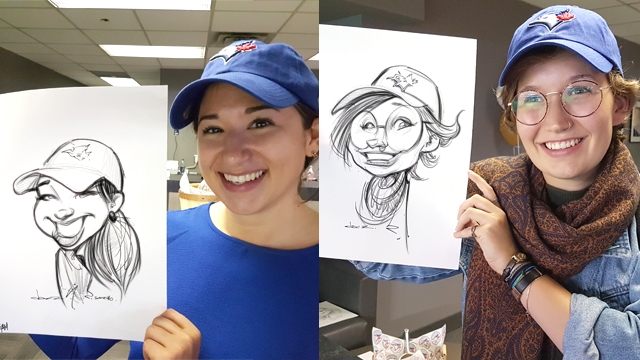 In addition to being a fantastic source of entertainment for all ages, your guests leave with an original piece of art - featuring themselves, and maybe event family and friends. Our live traditional paper caricatures are often framed and cherished in offices and homes for years to come. Impress your guests by hiring us to create caricatures at your event, function, or party. We provide live caricature services across Canada, USA, Australia, New Zealand, Spain, Dubai and Doha. Hundreds of companies and organizations have trusted us for live caricature sketches at their corporate functions, picnics, and galas. Our traditional caricature clients have been enjoying our services since 1991.