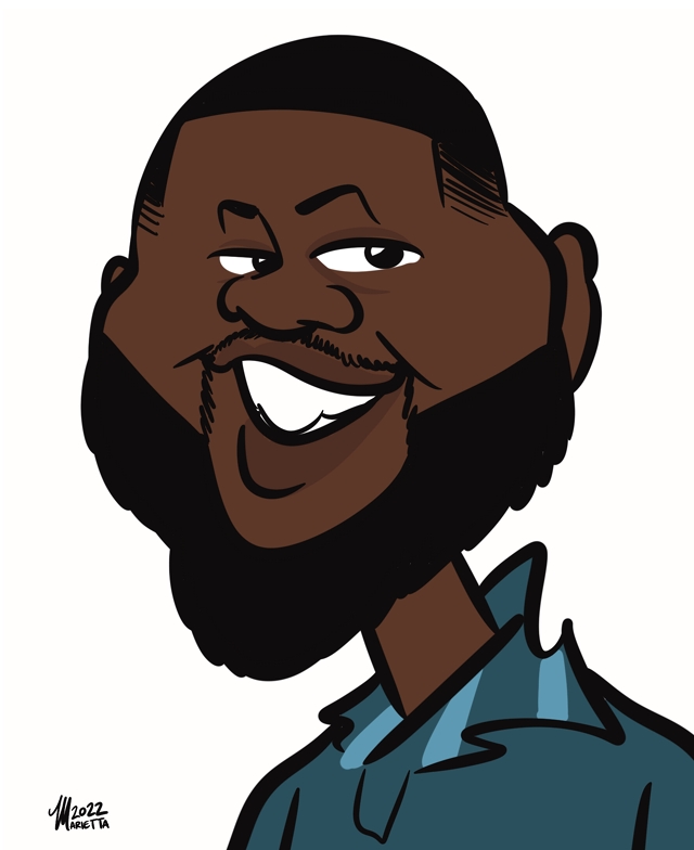She has done both live and virtual events all across the US, with clients including Zoom, Walmart, Petsmart, the Kansas City Royals, and more. When not drawing caricatures full-time, Marietta is married to her high school sweetheart and they have a small zoo of rescue pets, including a dog, cats, and a parrot.